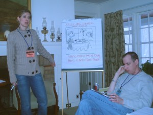 In a recent workshop on creating a sense of place, I kept saying “Don’t forget the food!” Speaking of which, here’s an insider’s tip you can share: Rich Wallace (author and former Highlights editor) and Marcia Dunsmore (gourmet chef) will be teaching Food and Fiction in 2011. We’ll have it up on the website soon. Yum!