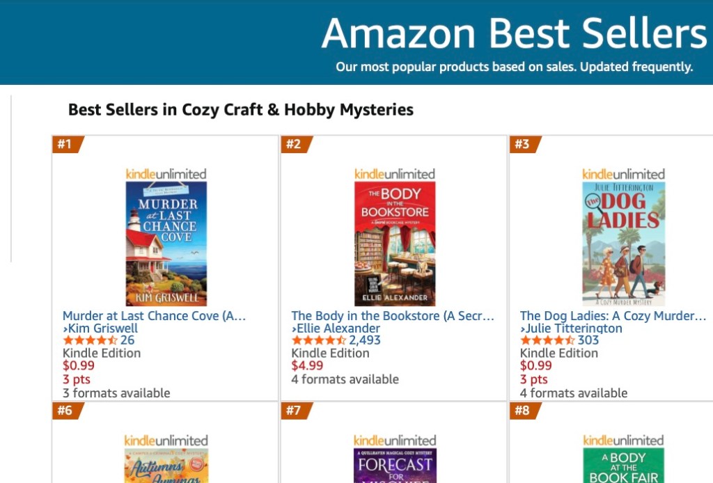 While I got my steps in (9,364 so far…!), I listened to the wonderful Patricia Rodriguez narrating the audiobook of Murder at Last Chance Cove and watched as the ebook version soared to #1 in the cozy mystery category on Amazon. Needless to say, it was a very good day for Saffi and me. It was so exciting I had to take a screenshot!
