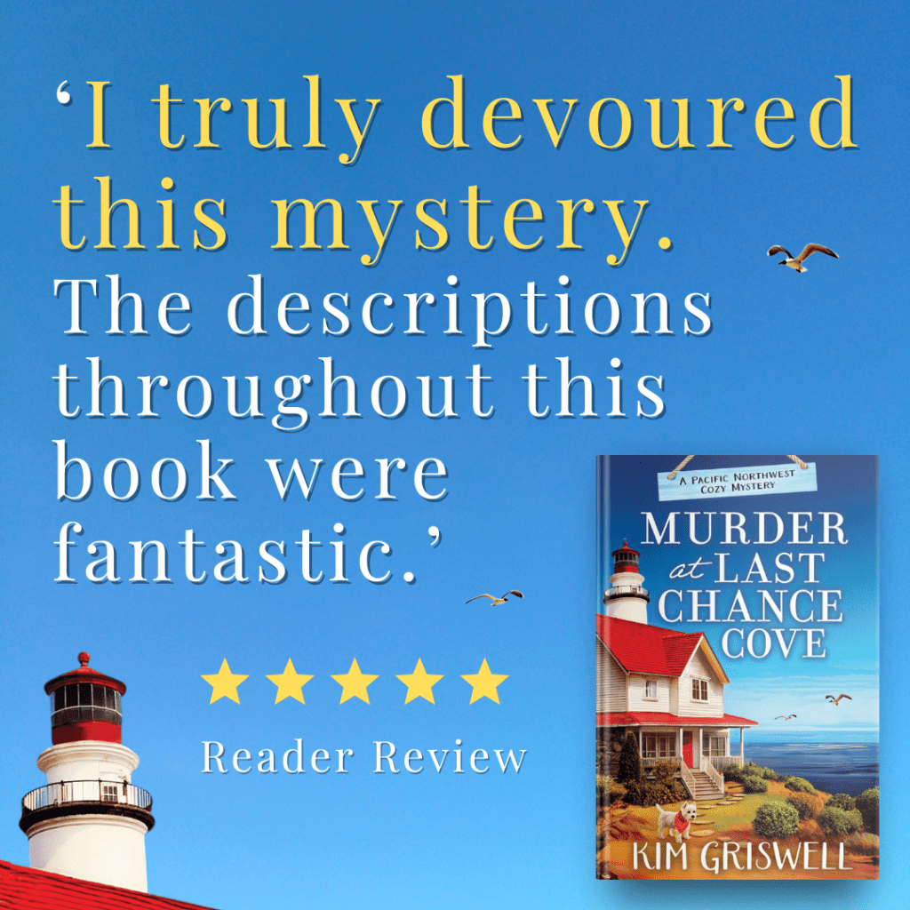Murder at Last Chance Cove is the first book in a new series packed with small-town coastal charm and a dose of murder. For traveling writer Saffi Graywood, Last Chance Cove, a stunning slice of the Oregon coast, seems the perfect place to write her next bestseller—until the RV park manager’s body appears on the beach beneath the lighthouse. In this close-knit coast community where fog rolls in without warning and ravens watch from windswept trees, everyone has something to hide.
